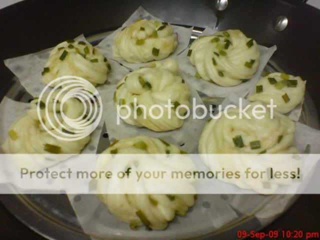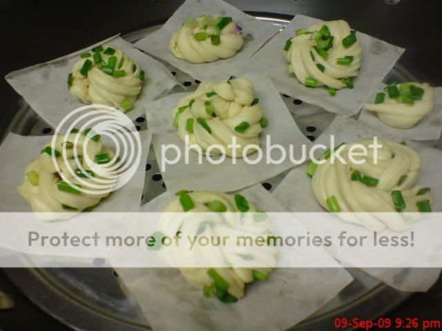 晚餐后洗碗时看到那还剩下的葱粒,想想丢掉好像很浪费,不如用它来做孟老师的青葱花卷.(没有时间但又想吃面包类的朋友,我建议可以试做馒头,因为简单又省时)我做这花卷只用了大概半小时就已经弄好造型等最后的发酵了.洗藻出来开炉蒸了20分钟(冷水蒸起)就已经可以吃到香喷喷的花卷了