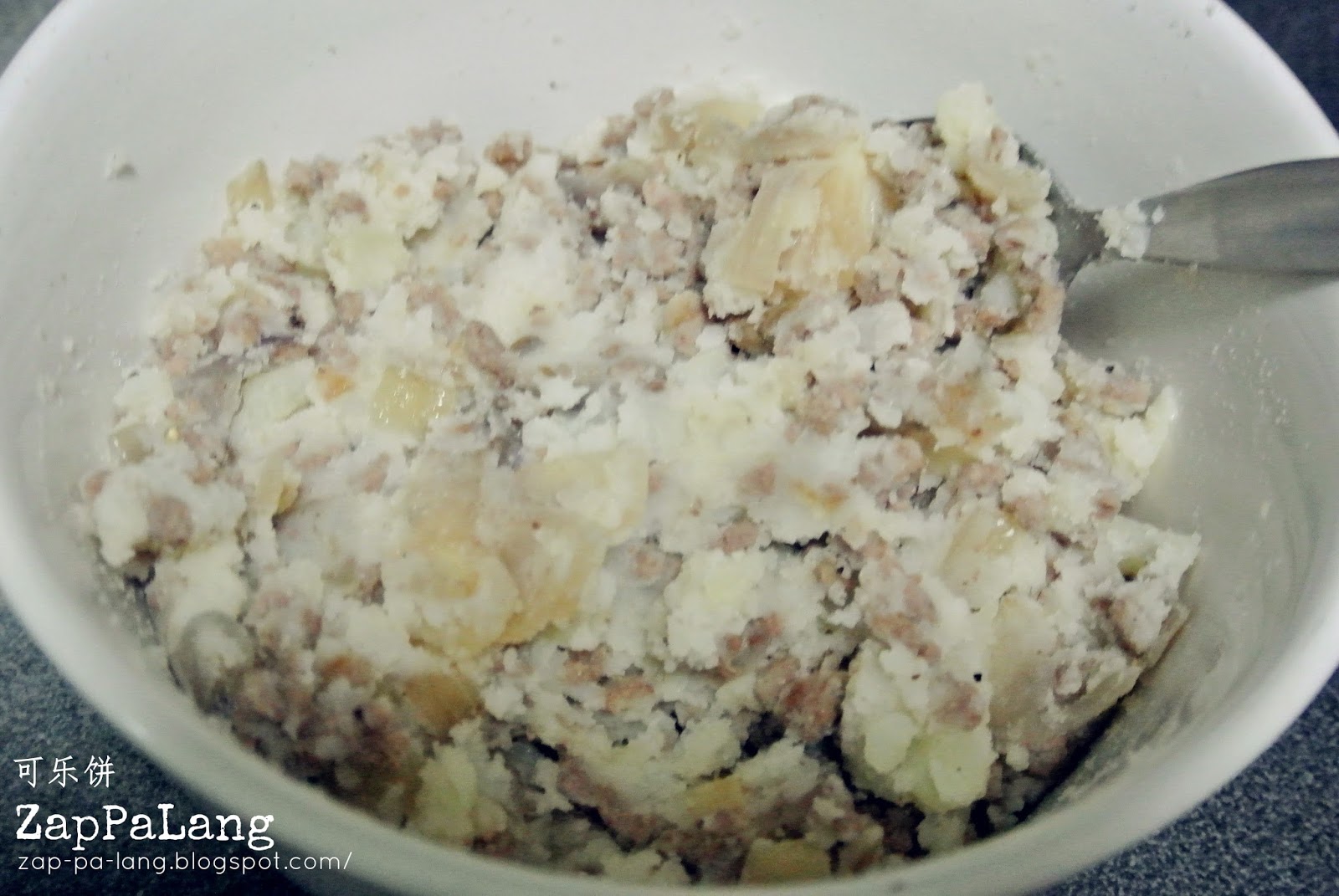 3。把1放入2里头拌一拌, 确保1每面都沾上2。
