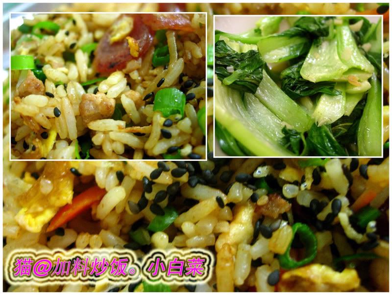 这个炒饭,洒上炒香了的黑芝麻+小银鱼+青葱,哇,每一口都香香的。。