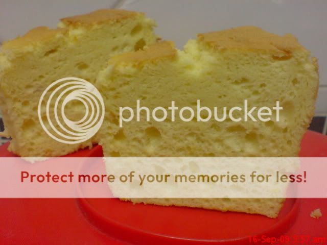 蛋糕在烤时没有预期中的发到高高,所以出来的成品比较矮,而且蛋糕组织也有很多的洞和比较Q,老实说味道是相当不错的,同事们吃了都说好吃(可能是安慰我吧,哈!)由于这是第一次的尝试,所以我并没有带着很大的期望,下次再改良吧,加油!!