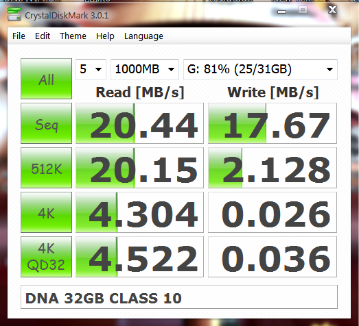 順便附上我的Sandisk 4GB class2的microSDHC的benchmark: