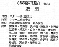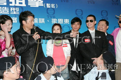 苗侨伟(三哥)、周海媚周海媚、江若琳以及吴卓羲吴卓羲为《学警狙击》剧集试造型。周海媚说出道第一部剧集《杨家将》与苗侨伟曾合作,事隔10年也因苗侨伟的关系吸引她回娘家。她在剧中饰演江湖大哥的大嫂角色,之前两辑都有留意,对吴卓羲和陈键锋比较熟悉。