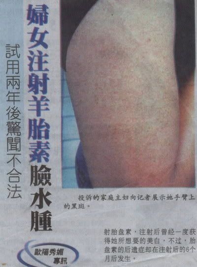羊胎素”、“瘋牛病”、“植物人”,乍一看,這三個名詞之間很難有什麼聯係。但日前,臺灣一名49歲女性就可能因注射羊胎素而染上瘋牛病,如今,該女子已形同植物人。新聞一經傳出,立刻成為港臺媒體關注的焦點。8月31日的香港《東方早報》、《成報》均以此為頭條。一時間,那些過去嗜用羊胎素讓“青春永駐”的女性也緊張起來。