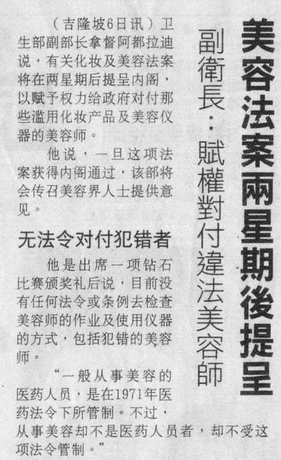 大马的美容已经发展到高科技的水准,用产品已经是慢三拍,很多妇女已经进化到以注射的方式来美容