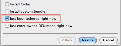 Your iOS device will reboot into a jailbroken iOS 4.3.2. Because this is a tethered jailbreak, anytime you reboot the hardware you’ll need to perform a tethered boot through redsn0w by launching the app and selecting “Just boot tethered right now” and clicking ‘next.’