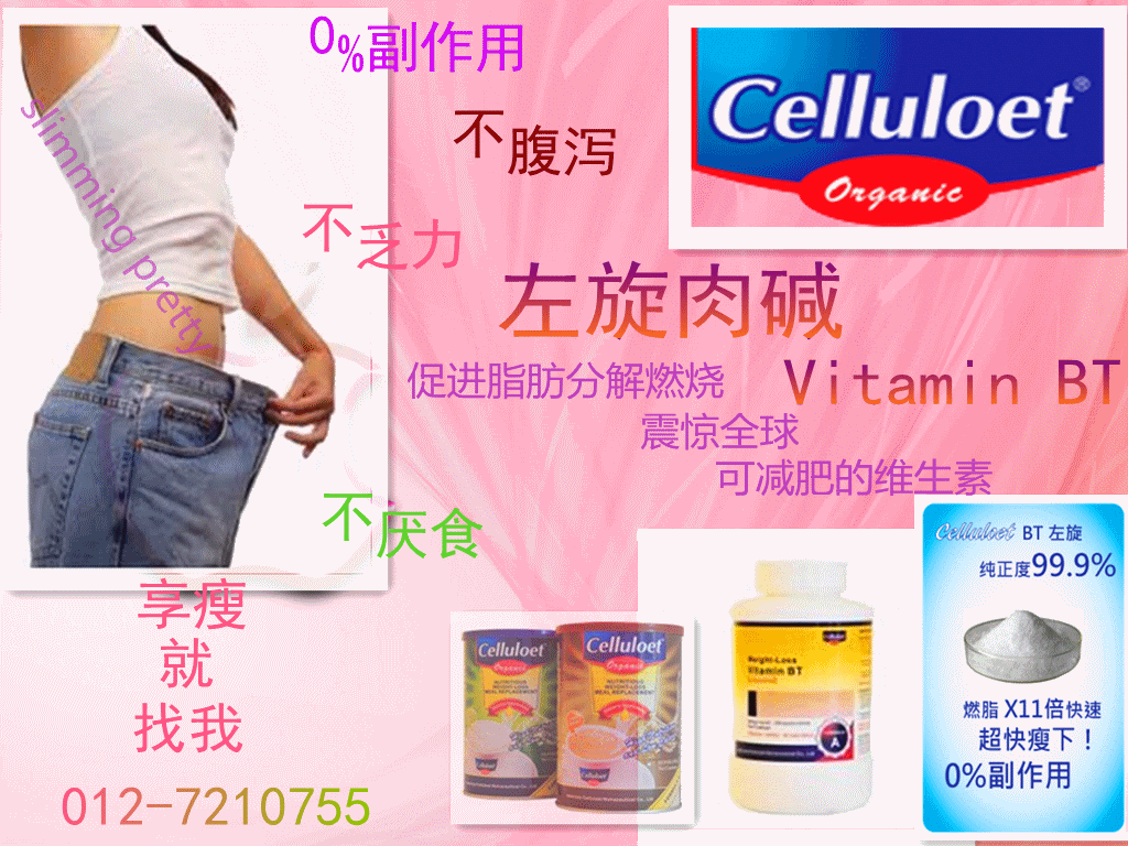 Celluloet产品, 0%药物,0%副作用, 绝不会心跳加快, 不会口渴, 不会头昏, 不会失眠, 不会乏力, 不会便秘, 因为我们产品不含一点药物!无论是男女老少。糖尿病者,哺乳中的妈妈,高血压者都可以放心的服用。。 |