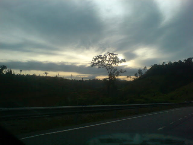 天尚未破晓,我们已经准备完毕,将要出发。黑夜的穹苍,兀自悬挂着无数的星辰,万里无云,的确是个出外旅游的好天气。 手表指示着凌晨五点四十五分时,车子便开始驱动了,直往北上。 沿着联邦公路直驶,不久便到了柔鲁汽车城,出南北大道后,过了不久便向右一转,直奔居林。 过了居林,便是通往宜力之道,当下全速向宜力奔去。 天以破晓,红彤彤的旭阳自东方缓缓升起,天空的漆黑已渐渐退色。 路途上的景色。