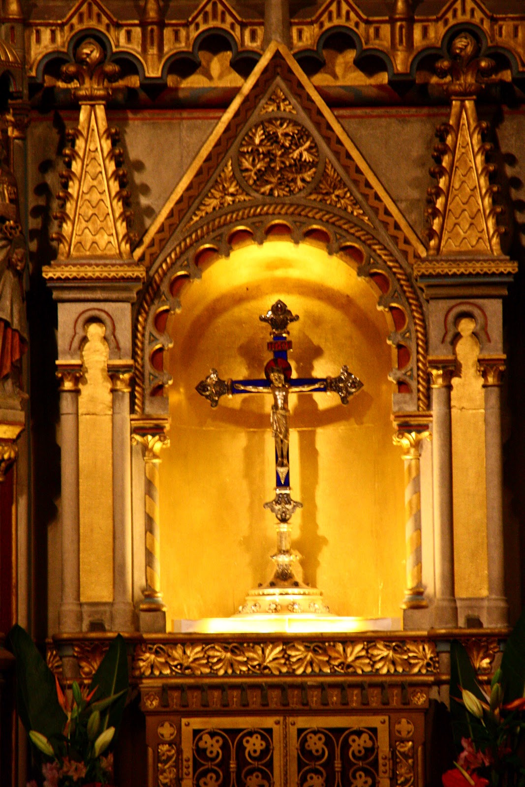 我们从前方一道侧门进入教堂里边,几缕阳光透过高大的彩窗,在大殿里洒下暖暖的光芒,为略为阴暗的大殿带来一股神圣庄严的气息。当眼睛经过了一段短暂的适应之后,这才清楚发现教堂内部的华丽程度堪比皇宫内院,尽显辉煌富丽景象,那些表面光滑的巨大深色大理石柱子,雕工精细的大理石浮雕,色彩斑斓的精美壁画与及绚烂的彩绘玻璃,简直美不言喻!穹顶华丽精美的镶嵌画记载了匈牙利第一任国王依斯特万(圣史蒂芬)的生平记事与及圣经里所记载的故事。阳光透过穹顶上的窗口倾泻下来,犹如天堂之光那般沐浴着竖立在大主坛正中央的圣史蒂芬大理石雕像,为大主坛增添一股神圣庄严的气息。位于主坛后方的礼拜堂内存放着一只木乃伊状的右手,经过考古验证,这就是圣史蒂芬的右手,是这里最为神圣的物件。还以为有机会可以一览实物,没想到我们只能从远处观望一只精美华丽的黄金盒子而已,根本就没法一睹收藏在黄金盒内的圣物。