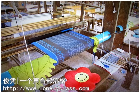 另一种是有图案的纺织,同样也上面的过程一样,不同的是打横的线必须根据图案而换上不同颜色的线条,要造出一匹有图案的布条差不多需要8天到9天。试想想,这些工作都是靠人工来进行,稍微不小心穿错线,麻烦就可大了!真的很佩服这些员工!