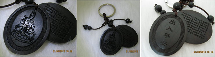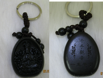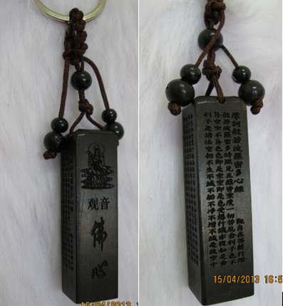 钥匙/护身挂饰 :乌木 观音雕刻心经 方形】-SOLD