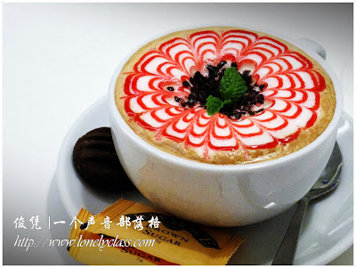 这真是把一朵花贴在咖啡泡沫上!看到这么精美的花纹,我刚开始还真的不舍得将它破坏呢! 吃了甜品后,可以试试不加糖的咖啡,来综合一下。