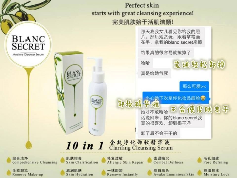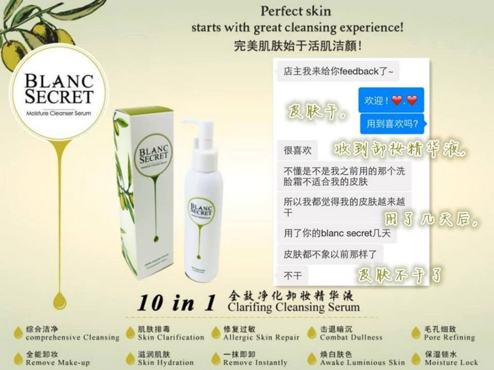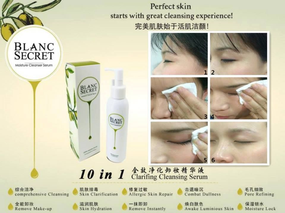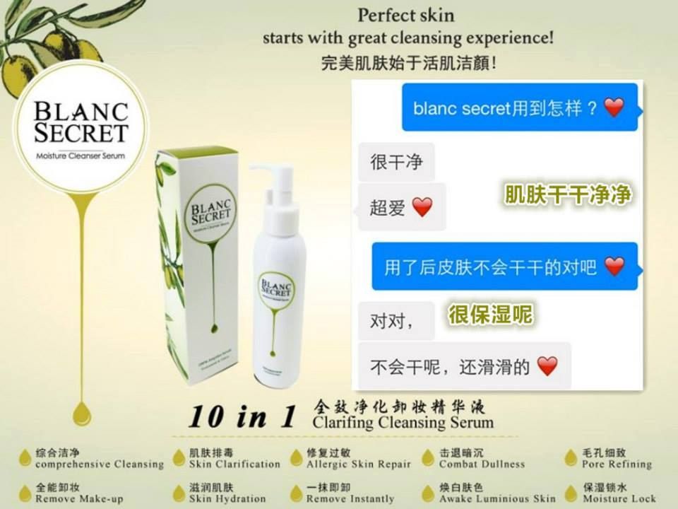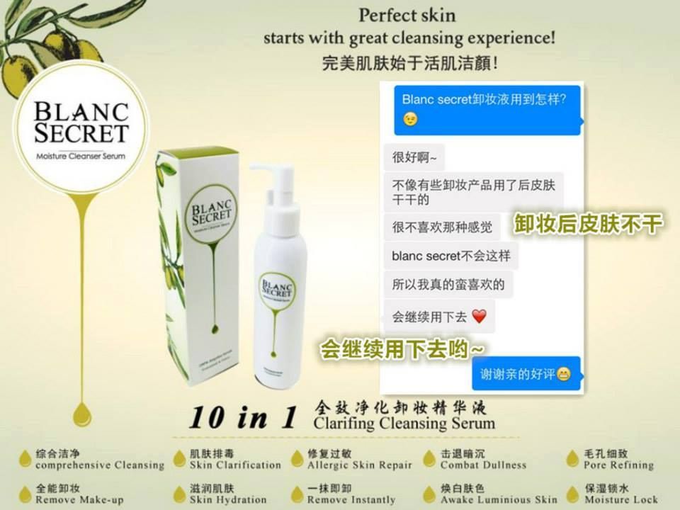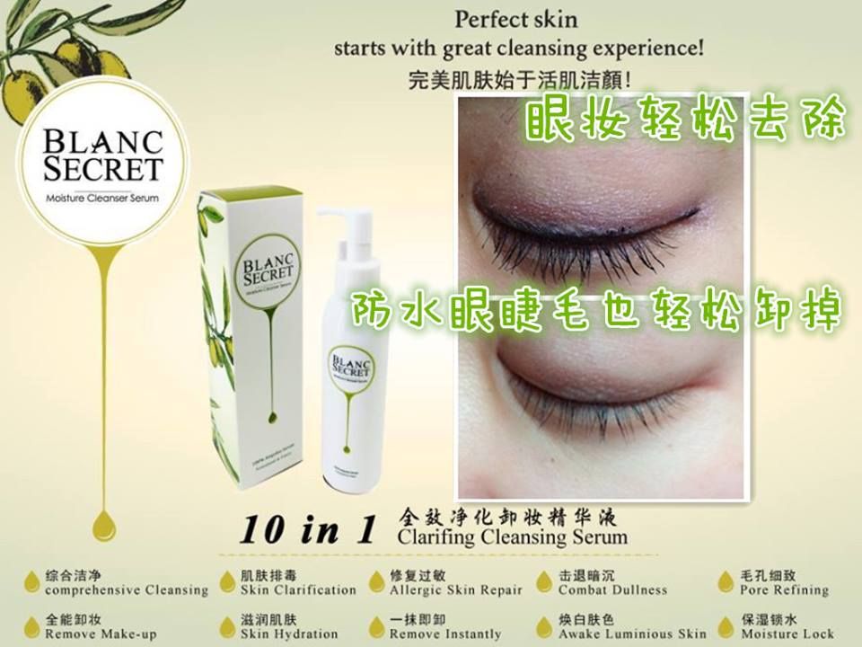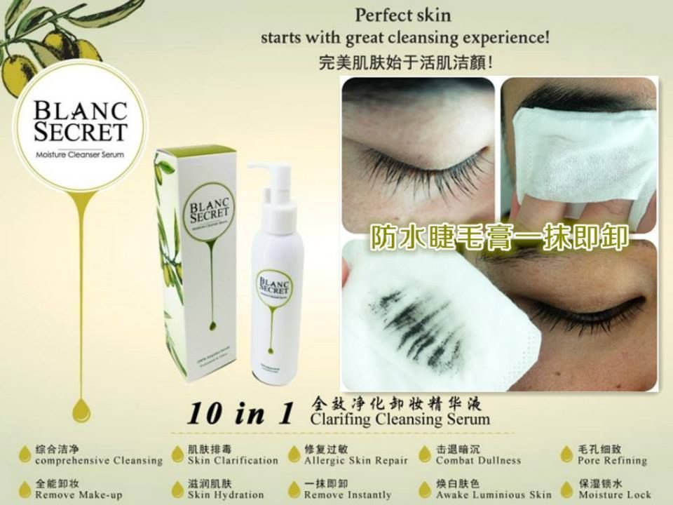 BLANC SECRET Moisture Cleanser Serum全效10 in 1净化卸妆精华液不惜成本,以精纯的天然植物精萃,结合了十种功效于一瓶!