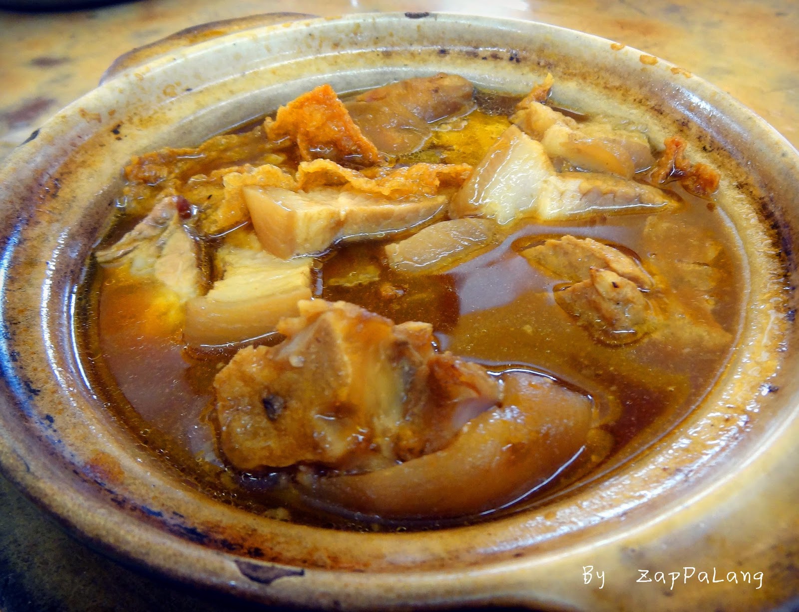 就算猪肉之前拿来水煮滚烂的,跟传统肉骨茶煮的,都没分别。。。 |