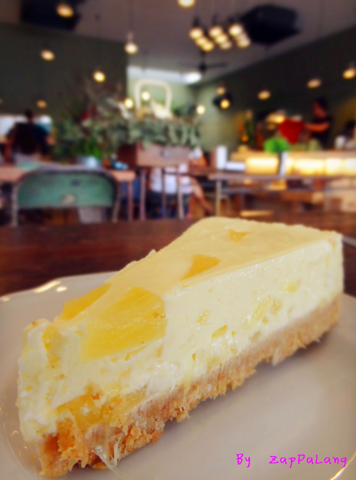 Pineapple cheesecake 是免烤的芝士蛋糕,芝士里参杂了小块的罐头黄梨块,酸酸甜甜的,不会有腻的感觉。底层的饼干有很香的奶油味,不错!