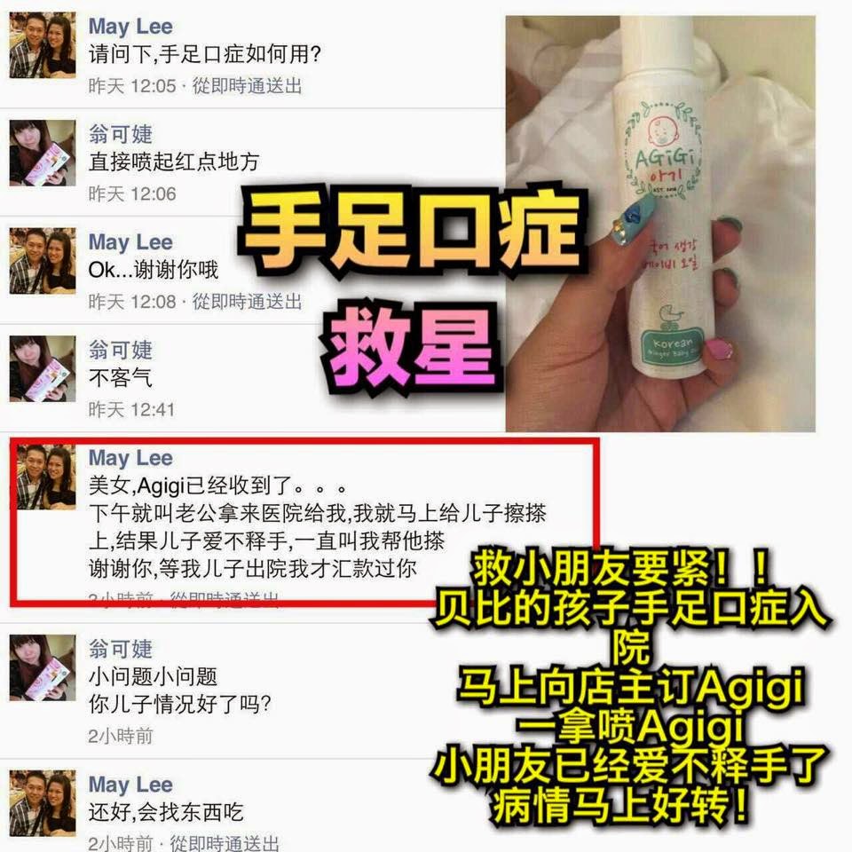 ✔记得!!一定要采用最温和,完全没有刺激性的 "韩国AGiGi精油喷雾" 为宝宝腹部按摩。不冷不辣最适合宝宝。