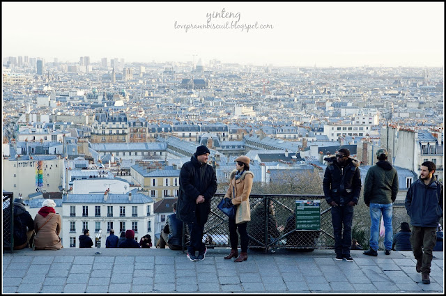踏出教堂,旅伴急冲冲找公厕交水费去了,我就站在教堂前放的栏杆前放空看风景。圣心大教堂挺立在这个浪漫之都海拔129米的山丘之上,因而从圣心教堂所在的山丘往市中心看,就能把巴黎的千年历史尽收眼底。