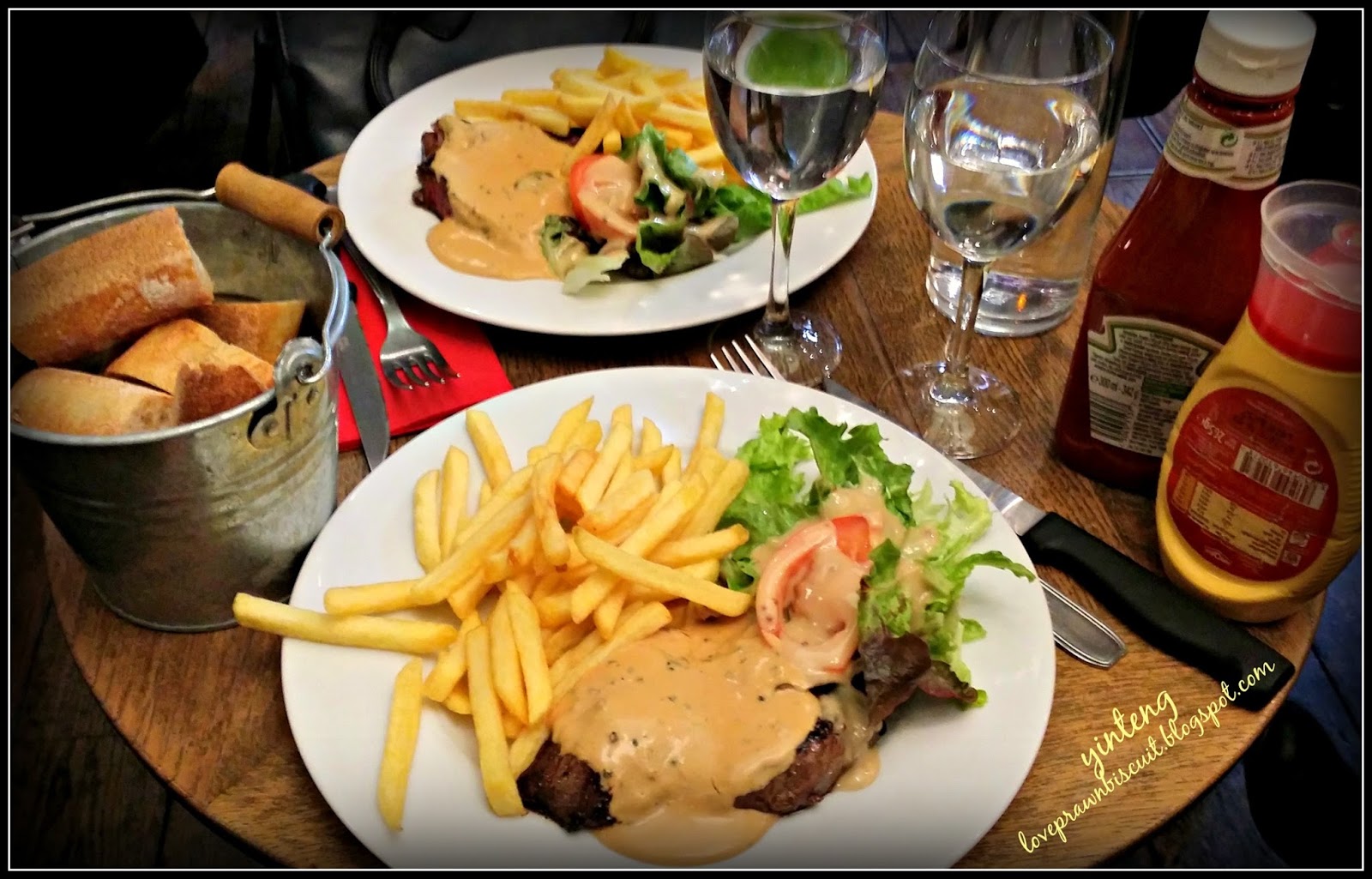 反正也是午餐时间,我们便在圣礼拜堂入口对面的一家餐馆,L'Annexe用餐。今天餐单的特别推荐是牛扒,才欧元十三块八一客(马币约五十七令吉),就吃这个吧!有一个装满酥脆法国面包的小铁桶就不说了,牛扒煮得刚好,肉质鲜嫩多汁,伴上薯条沙拉,这餐吃得出乎意料地满足(因为对旅游景点附近的餐馆没抱着太大的希望,所以吃到好吃的食物还挺开心的)。