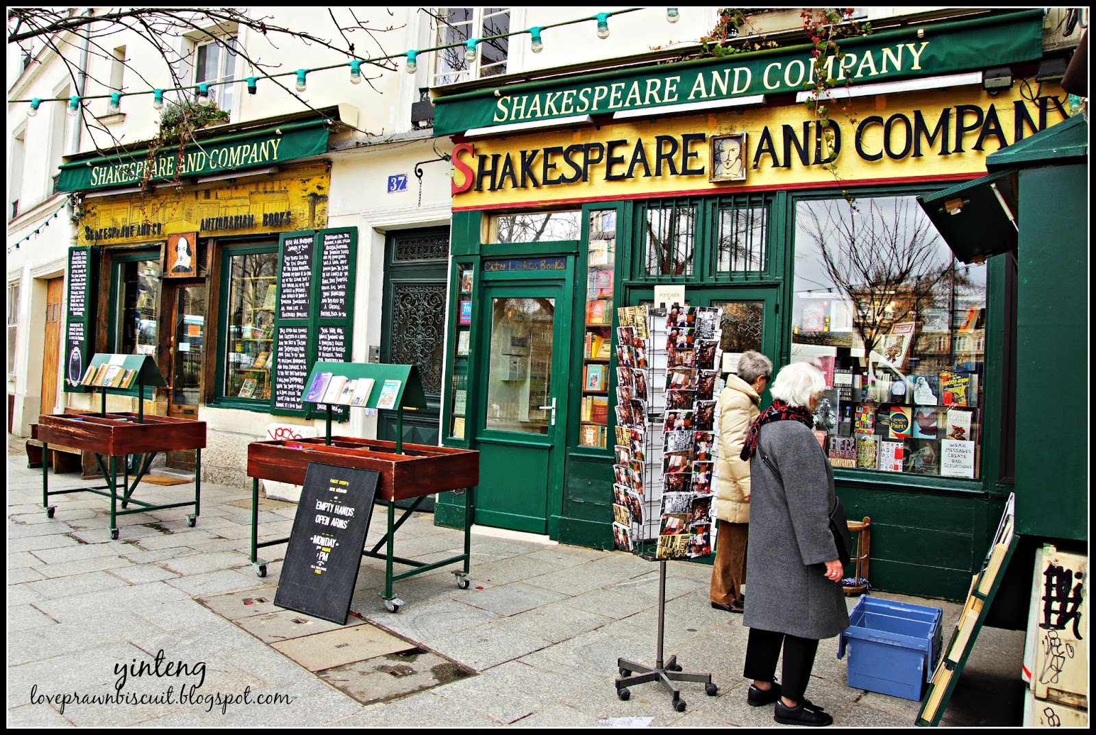 过了爱情桥,走着走着,居然就看到了莎翁书店 (Shakespeare and Company)在左侧的店铺!(好啦其实应译为莎士比亚书店书店,但我本身觉得莎翁书店比较好听,呵呵)二话不说,先进去看看吧。