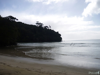 今天的目的地就是距离出入口11公里的North Arm Hut,预计费时4小时多。由于行程没有太长,也不受地形的限制如海水退潮,基本上,我们都是慢慢的走,看到漂亮的景色就会停下来拍照。步道的景色还是以树林和海为主。