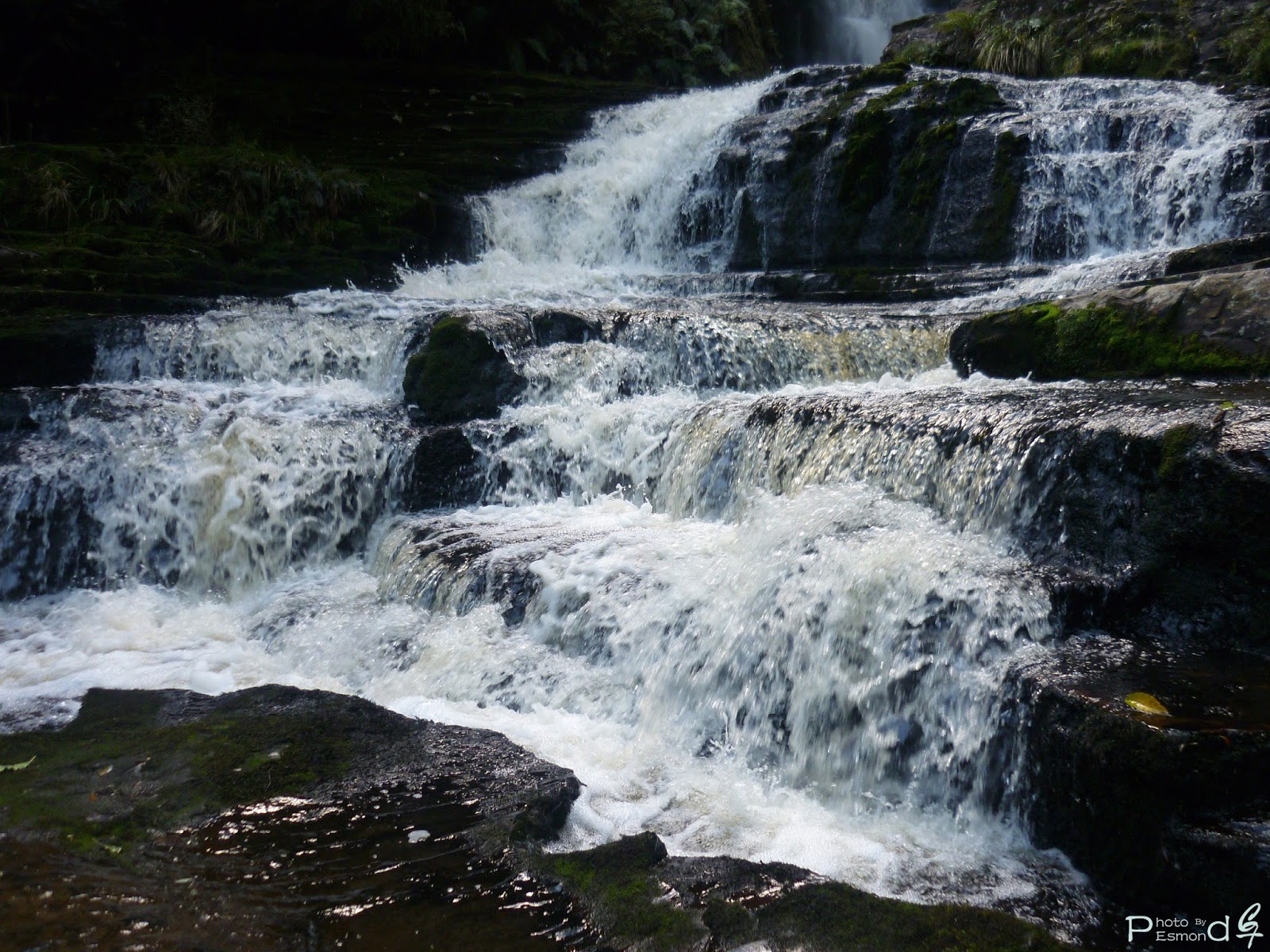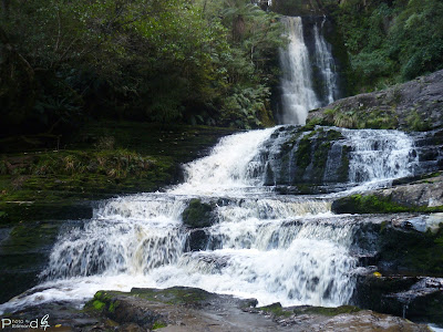 过了这个小小的瀑布,我们终于去到另一个真正瀑布的景点--McLean Falls。这个瀑布从停车场沿着步道走进去大概需要20分钟,不会很难走,算是很容易抵达的瀑布了。在接近终点前会先看到一个小瀑布,这个小瀑布再小也比之前的那个Niagara Falls大许多。真正的好戏可在后头哦,终点的瀑布才真的是一个壮观的景色呢!这个瀑布在纽西兰众多瀑布中,虽然不是最壮观的、也不是最出名的,但却是我最喜欢的一个,我喜欢这个瀑布和周围环境形成的画面。