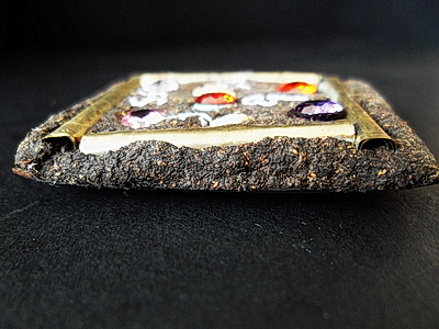 | 从这两幅相片可以看到这尊佛牌里面加入了很多圣料和金属粉 |