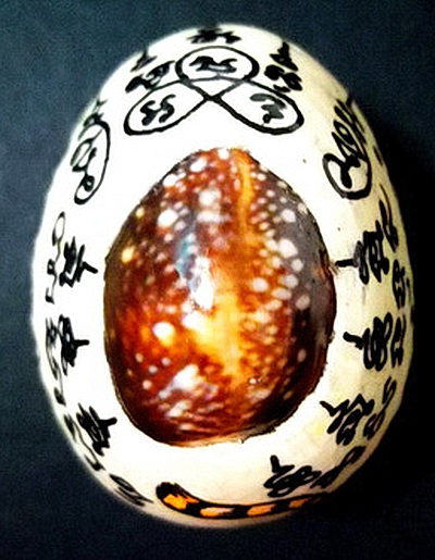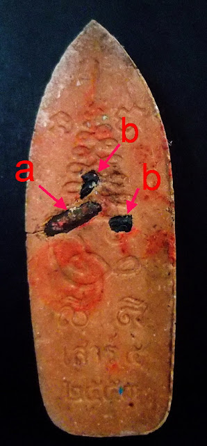 | 可清楚看到草药材料,宝石,矿石,手写Takrut和Archan 亲写的符咒 |