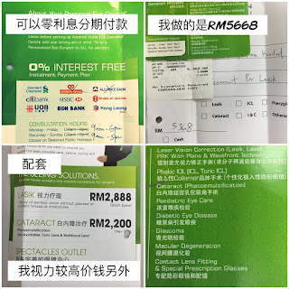 我的度数是800+左右,散光4.0,医生建议我做 RM 5688 的配套,医生有说RM 2888的配套我也能够做,但是由于我散光比较高,晚上看光就会散开,毕竟是眼睛嘛!灵魂之窗耶!我才不要又来做第二次手术,所以不要为了价钱让自己痛苦啦,分期付款也不过400一个月这样,我还能负担。