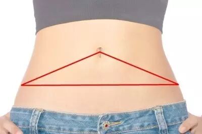 连接肚脐和髂前上棘(髂前上棘就是我们系裤腰带时,顶着裤腰带不致于滑下去的那个最高骨头)。当骨盆发生旋移时,这个三角形也会发生长短不一的改变。