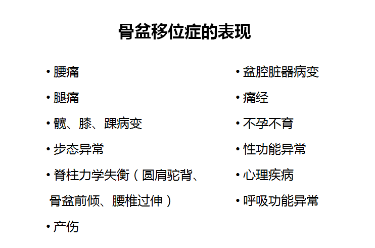 判断一个人是不是有骨盆旋移症,要坚持三个原则:有症状、有骨头偏歪,还有压痛。