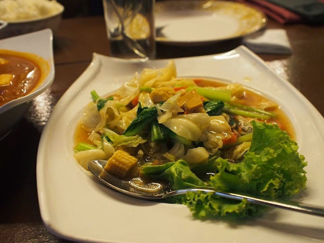 冬焱汤里满满的海鲜,有虾,sotong 和蟹柳。 汤头鲜美,味道也够酸,但是对我来说太辣了! 可是我爱吃辣的朋友吃得津津有味,所以能吃也爱吃辣的朋友们可以尝尝这道冬焱汤。