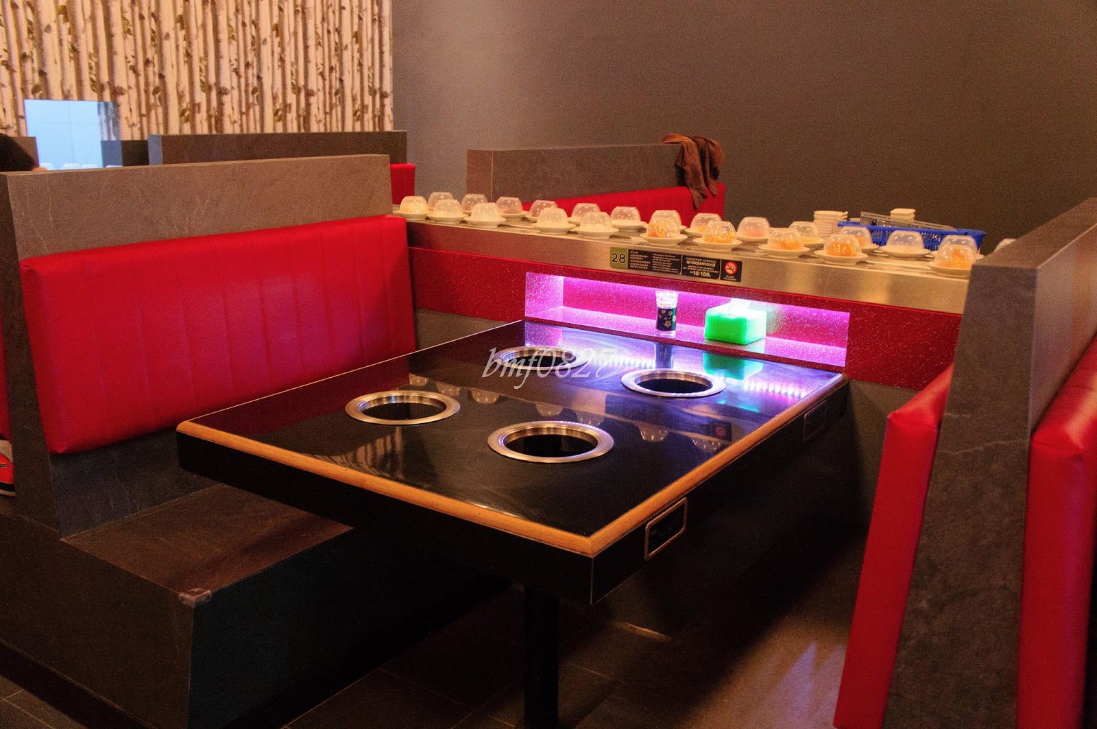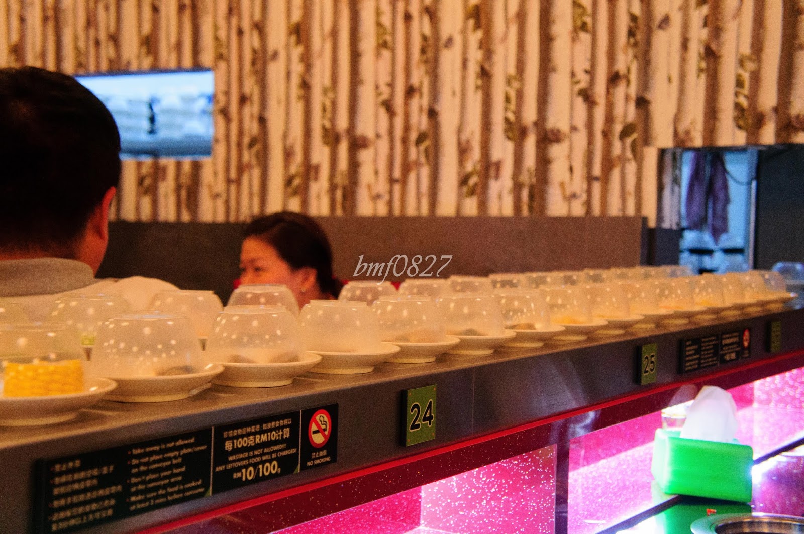 日式旋转可以直接坐在位置就拿,这个 feature 是吃到饱的火锅店少有的。极其方便,可以在和亲戚朋友聊天的时候,伸手去拿。而且不用等,想吃什么就直接拿了煮来吃,适合我这种不能挨饿的人。
