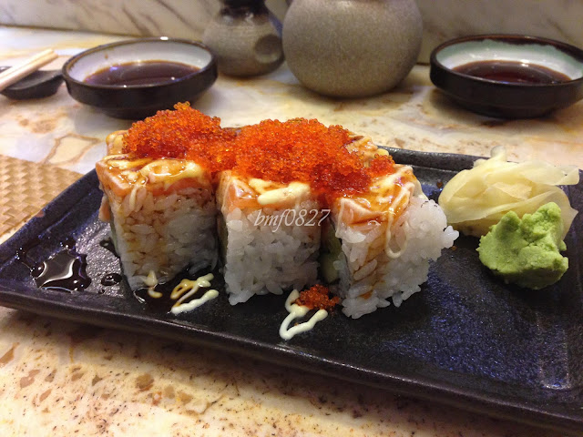 由于被那鲜红的三文鱼所吸引了,所以就选了三文鱼 Maki。 烤过的三文鱼,加上美乃滋,上面还铺满了飞鱼卵。 里头的馅料丰富,让人吃下去,脆口的飞鱼卵和各种配料的结合天衣无缝。 而且,在馅料里还有让人惊喜的 Cream Cheese,赋予味道上更多的层次感。
