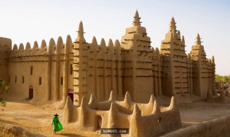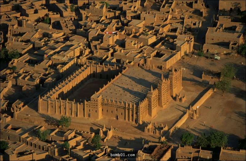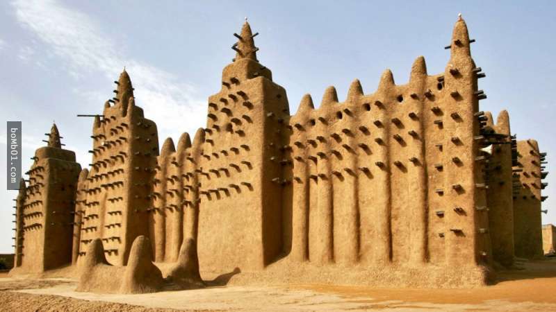 ▼1. 马利共和国,杰内大清真寺。这是一座拥有百年历史的巨型建筑。