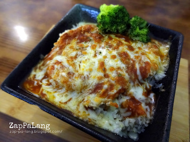 表面铺得满满的芝士,拉起来还牵丝的呢!底下用了类似意大利红酱的酱汁来配搭炒饭,整体上味道不错。但错就错在那一片猪扒,实在是太硬、太没有味道了!就连我在家也可以做出比这个更好吃的猪扒!