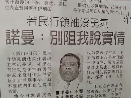 诺曼:一直知伊党要建神权国·“行动党攻击马华虚伪”