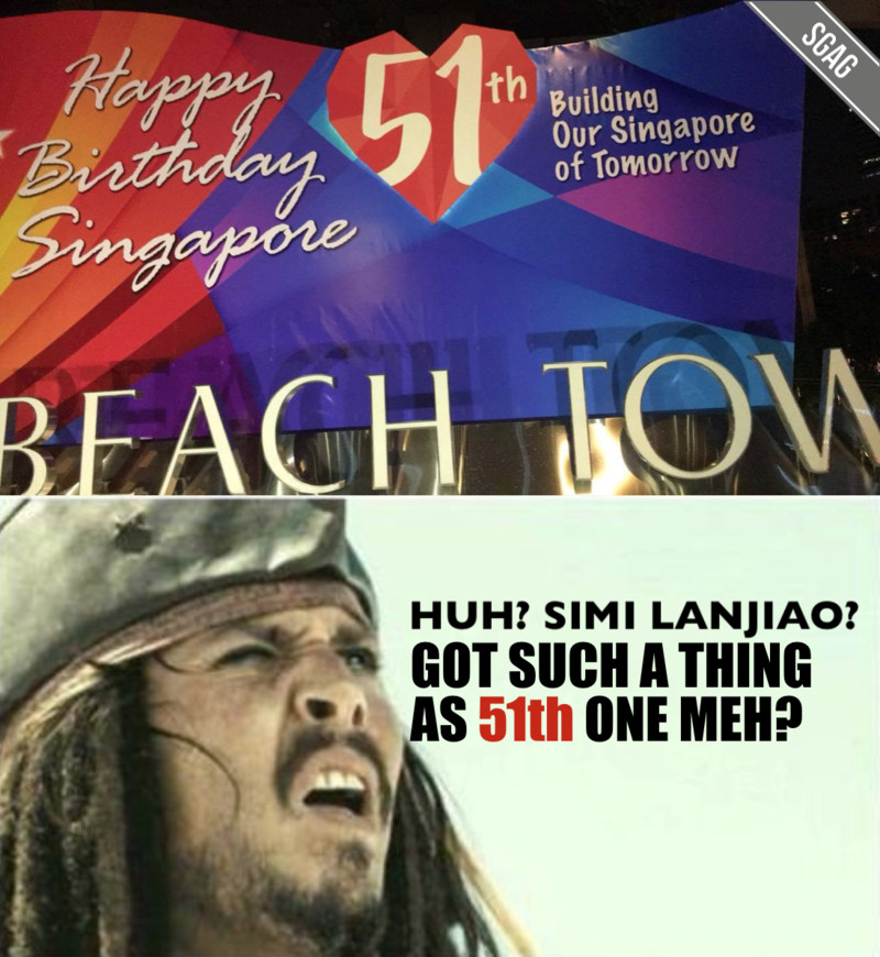 请问是'Happy 51st birthday, Singapore'或'Happy 51th birthday, Singapore'?