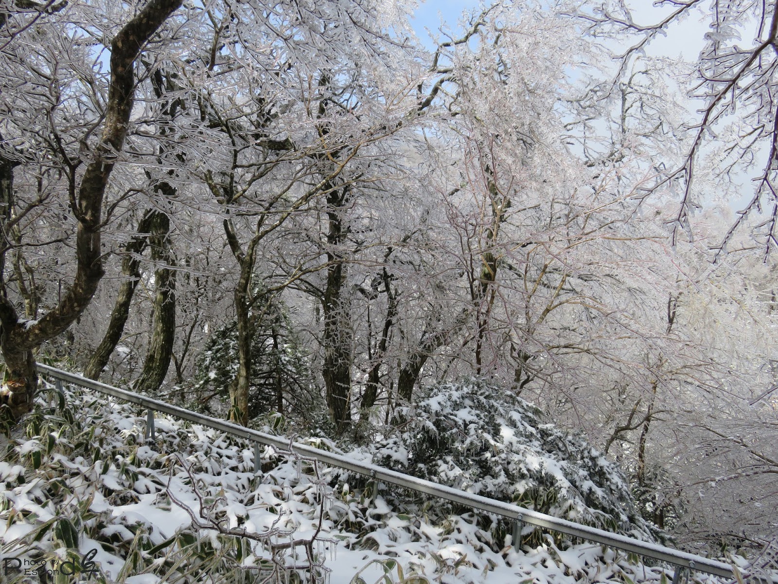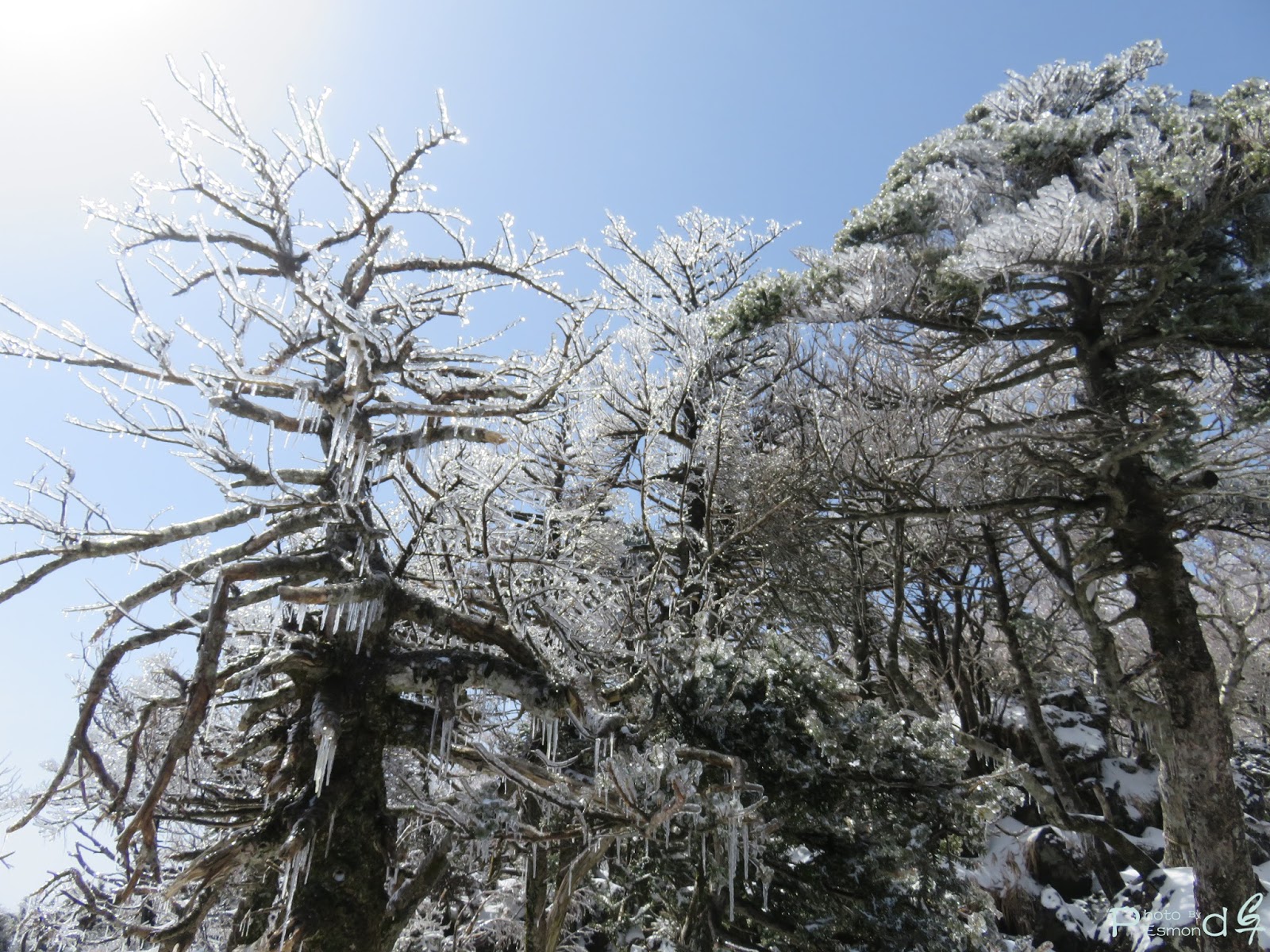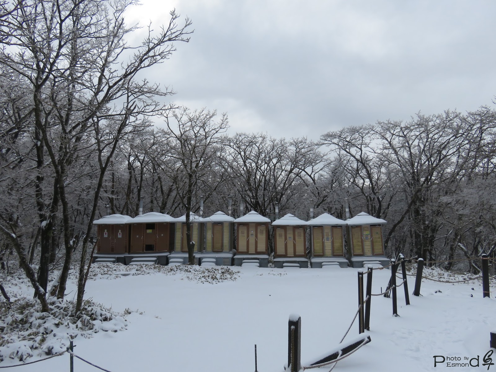 经过了杜鹃田掩蔽所后的山路,难度一下提升不少。这一段攻顶的山路变得很陡,就连我也不得不一直停下休息。这段山路,从掩蔽所去到顶峰全长2.3公里。在这短短的2.3公里,登山客需要从海拔1500米走到顶峰,海拔1950米,就在这2.3公里内需要提升450米的高度。。。虽然山路蛮陡,很吃体力,但是这段山路却因为下雪,有了积雪的关系反而变得容易了一些。