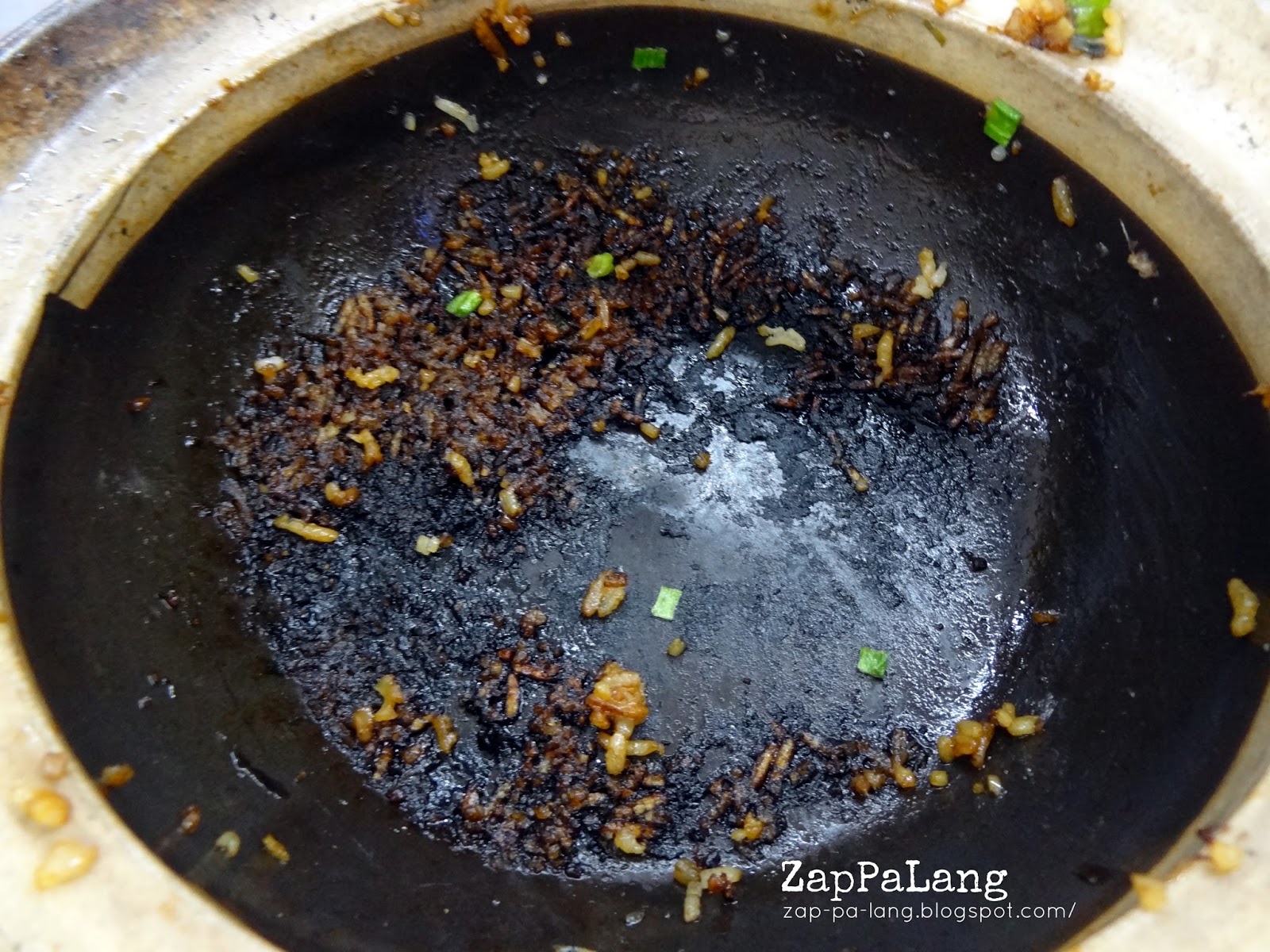 食物送上来的那一刻,瓦煲盖一掀开,没有我期待的香气,我心中一沉。用勺子搅拌了一下,没有饭焦,只有锅底的一层完全焦黑的锅巴,另一煲甚至有明显的烧焦味~