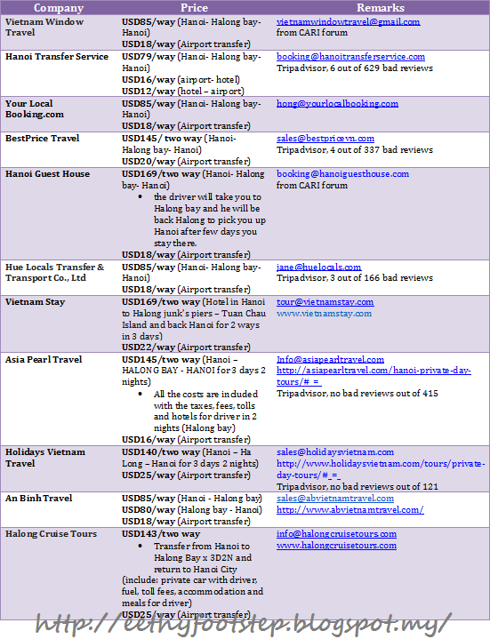 对比之下,和其他旅行社的价钱差不了多少,而且还送了Hanoi Free Food Tour(值USD25/人),所以就决定了包车及游船的配套也向Asia Pearl一起签下