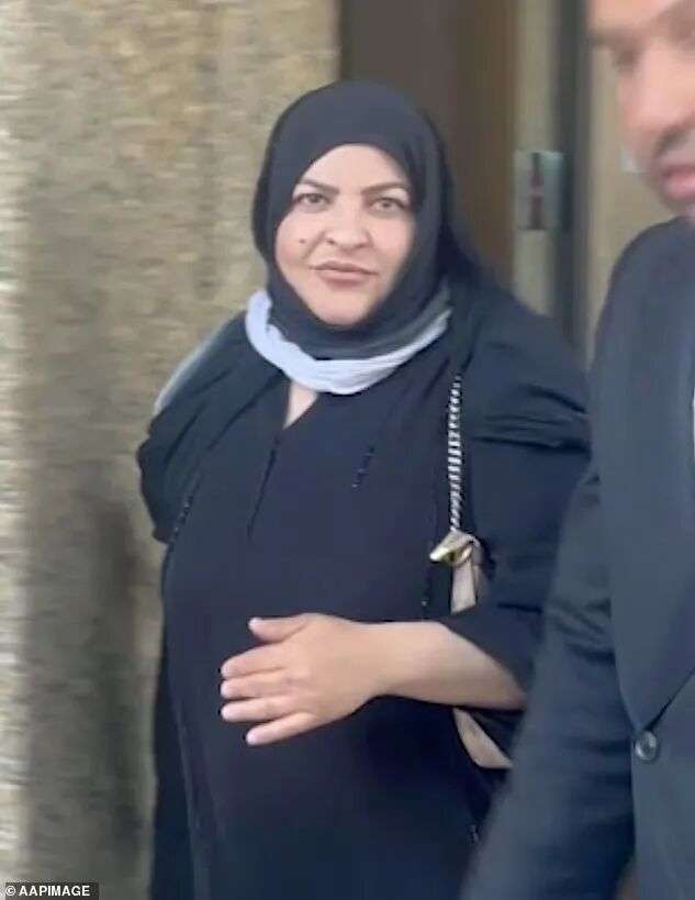 (母亲Enam Hmeed离开法院时面带笑容)