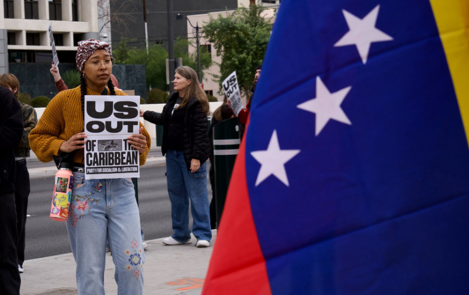 抗議者聚集在拉斯維加斯,譴責美國對委內瑞拉的侵略。