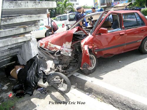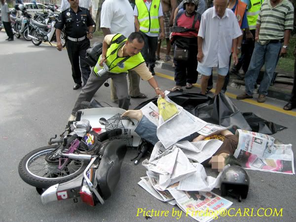 原帖由 firedog 于 5-9-2006 01:17 AM 发表 建議你像我這樣,把照片打上名字或標誌,免得照片被盜用!你所傳上的照片是死亡車禍?如果不是的話,就文不對題啦!不過,沒關係,反正也只是要提醒這裡的朋友們在路上要常常保持警惕! 請繼續支持!